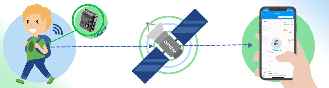 Для початку дізнайтеся поточну геолокацію дитини на мапі. Для цього потрібно використовувати додаток GPSM client для вашого пристрою (Android і IOS). Після цього зробіть односторонній виклик і поговоріть з дитиною.