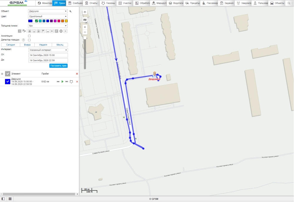 Отслеживание геолокации объекта "Дедушка" в режиме реального времени (Web-интерфейс)