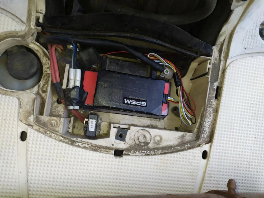 На мопеді був встановлений GPS трекер GPSM U9. Пристрій працює від 9 до 36V. Після установки GPS маяка власник буде контролювати місце розташування мопеда в реальному часі, відстежувати швидкість, число стоянок, зупинок, пробіг, зберігати маршрути і історію пересувань. Також, GPSM U9 відправити повідомлення в разі ДТП, обриву харчування або глушіння GSM сигналу.