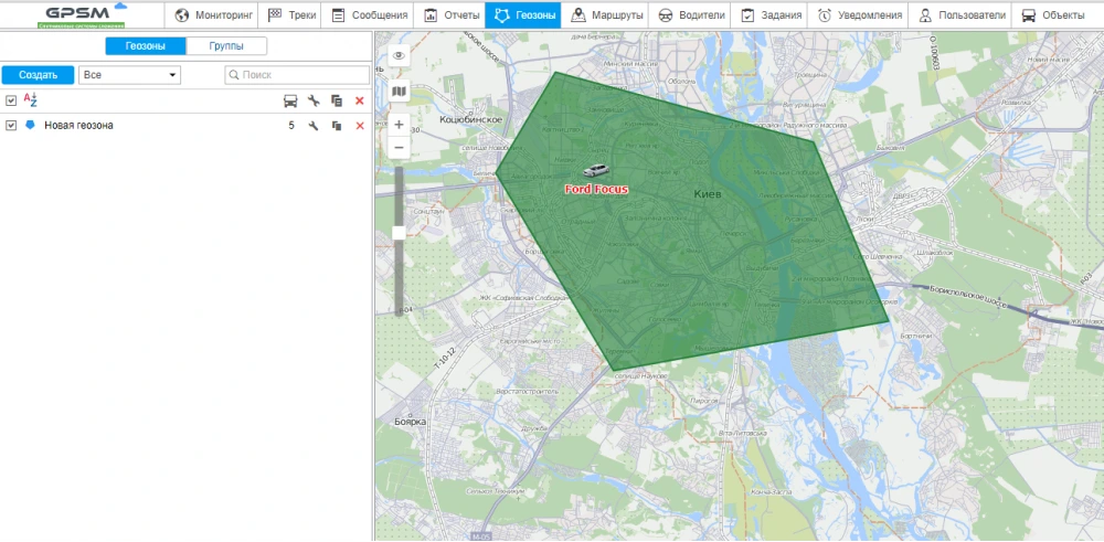 7. Отчёт по посещению геозон. Если Вы отметите на карте интересующие Вас объекты или территории, то при проезде через эти выделенные области, данные о таком событии, будут выводиться в таблицу отчета «Посещение геозон».