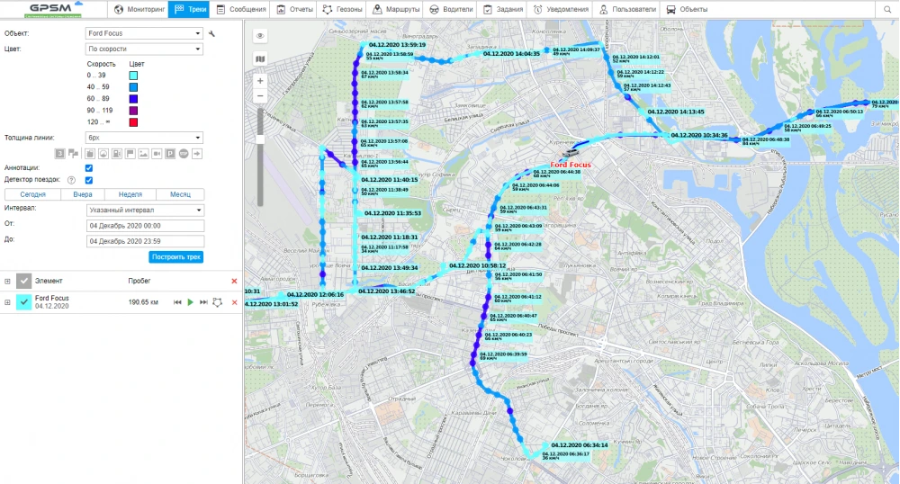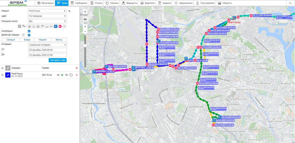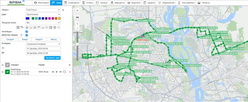 1. Построение трека — линия движения объекта на карте. Трек строится по точкам и соединяется отрезками в единую линию. На трек могут быть нанесены маркеры, обозначающие места, где происходили парковки, заправки и другие события.
