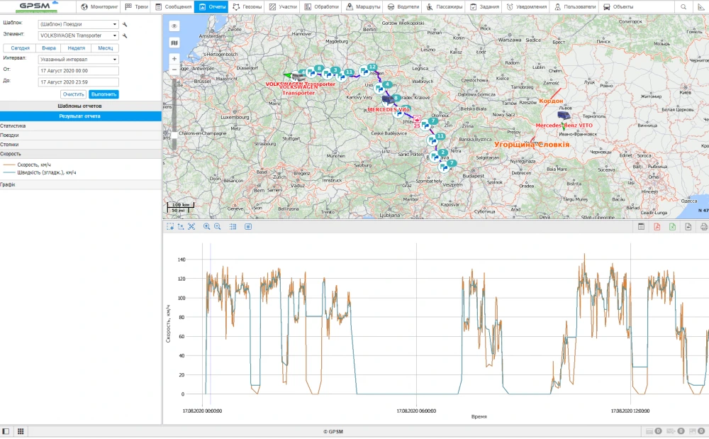 Большинство наших клиентов доставляют грузы не только по Украине, но и в другие страны СНГ и Европейского союза. Конечно, им интересно контролировать маршруты, перемещение машины с грузом или пассажирами, скорость, расход топлива, стоянки и остановки по всему маршруту.