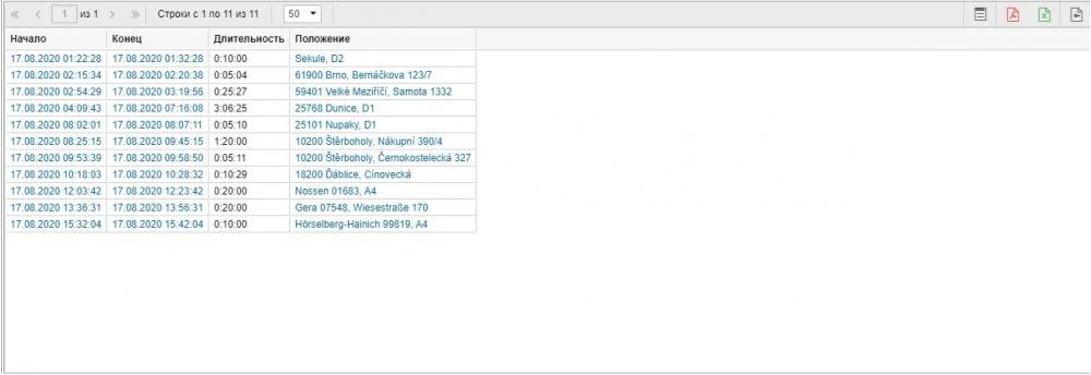 5. Отчёт по стоянкам. Отчет по стоянкам формируется интуитивно понятным принципом: таблица «Стоянки» заключает в себе данные о начале стоянки, длительности простоя, времени окончания простоя, также фиксируются данные о местоположении стоянки – указывается адрес.