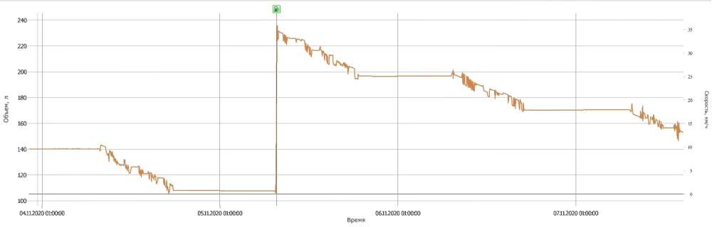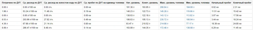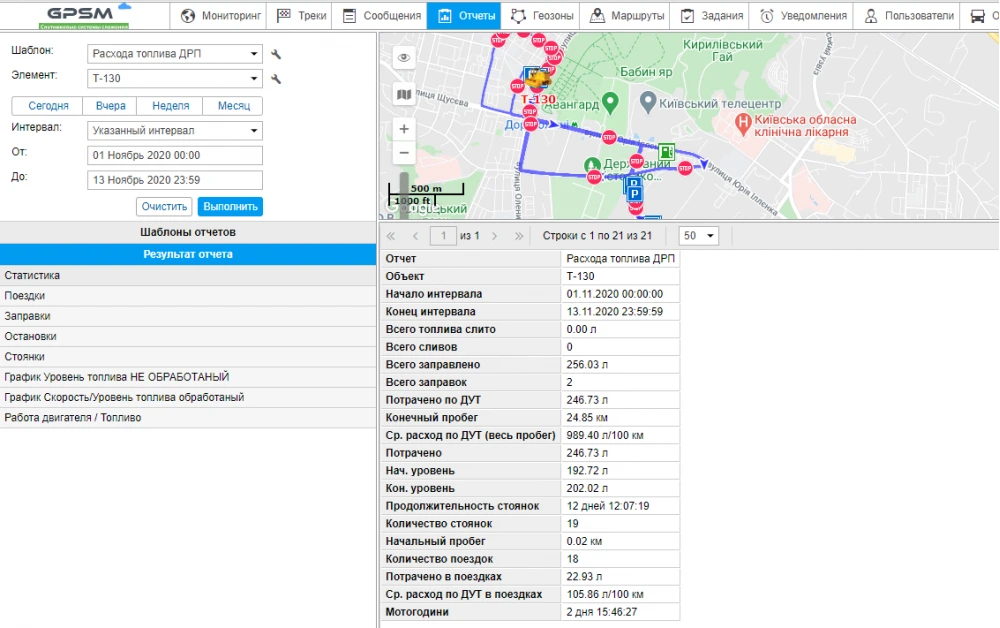 6. Звіт по витраті палива. Звіт по витраті палива формується виходячи з норм витрати палива і розраховується виходячи з даних кілометражу. Також, формується звіт за даними високоточного датчика рівня палива, штатного датчика, витратоміра палива або інших вимірювальних приладів.