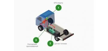 - GPS трекер (відстежує місце розташування техніки, швидкість, число стоянок, зупинок, пробіг, зберігає маршрути і історію пересувань транспорту)