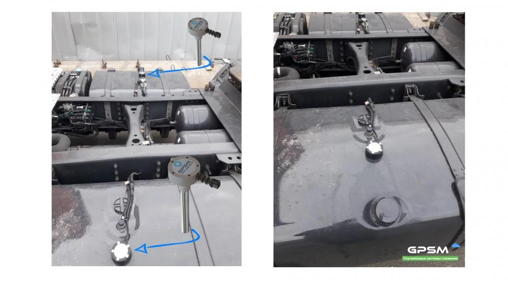 GPS monitoring system with two fuel level sensors. Installation on a SCANIA truck tractor