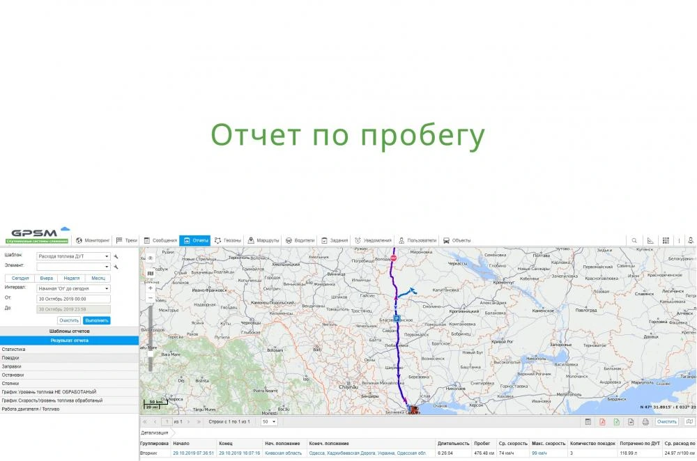 1. Report on trips. In the "Trips" report, data is generated with the time and place of the start of the trip, the time and address of the end position. Data on trip duration, mileage, average speed, maximum speed is recorded.