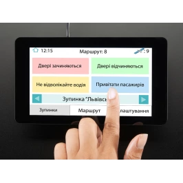 - Кольоровий монітор з на якому графічно відображається автобус на карті, маршрут прямування автобуса, поточна і наступні зупинки. Крім того, може відображатися соціально корисна інформація та матеріали рекламодавців.