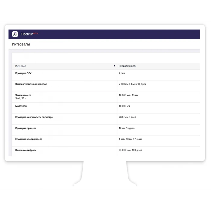- Automatic assignment of service for specified vehicles by time interval, mileage, machine hours.