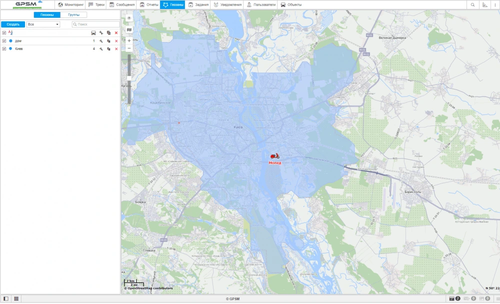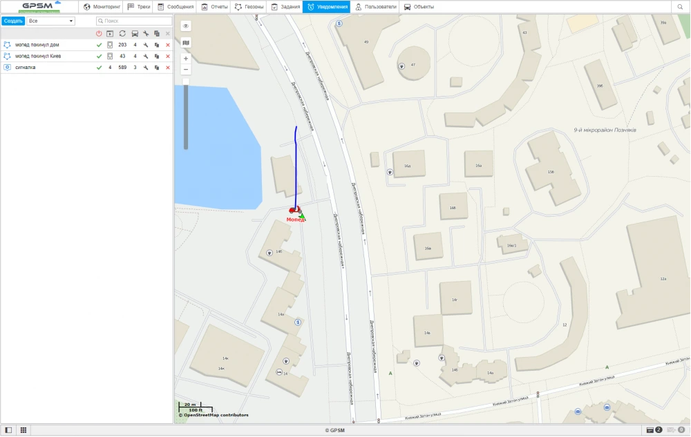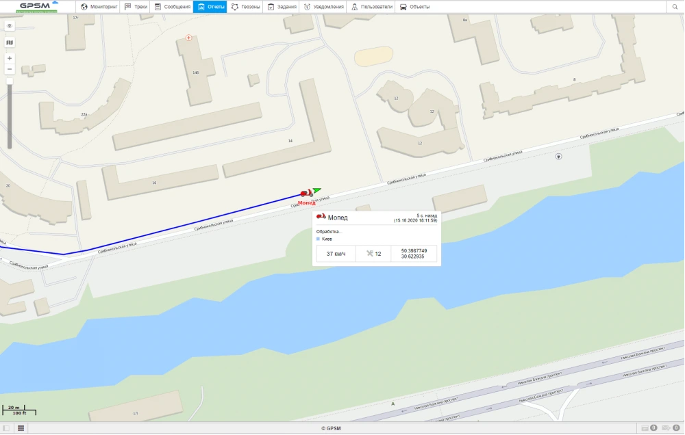 Web-интрефейс. Открыв вкладку «Мониторинг» можно отслеживать передвижение объекта на карте, узнавать точный адрес по которому находится ТС. В одном аккаунте можно отслеживать любое количество мопедов.