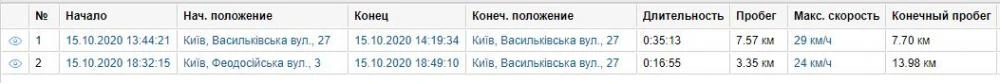 2. Отчетность по поездкам: в отчете «Поездки» информация формируется с учетом времени и точки старта поездки, а также времени и конечной точки. Здесь можно узнать информацию о продолжительности поездки, пробеге, скоростном режиме.