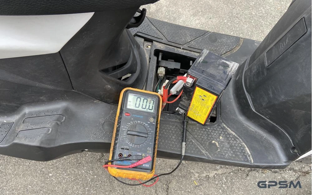 Для установки GPS трекера необходимо найти аккумулятор в мопеде. Далее нужно померять напряжение аккумулятора. Мультиметр показал 14 вольт. GPS трекер работает от 9 до 36V. Далее, процесс монтажа GPS трекера.