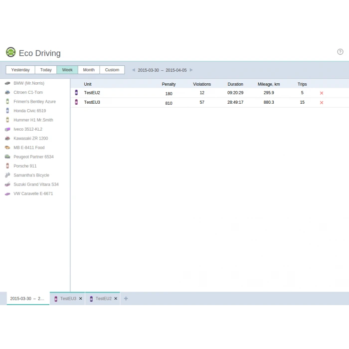 Для аналізу можна моментально отримати звіт щодо безпеки водіння кожного автомобіля за будь-який інтервал часу, будь-яку поїздку. Також детальний звіт можна отримати стосовно всього автопарку в цілому.