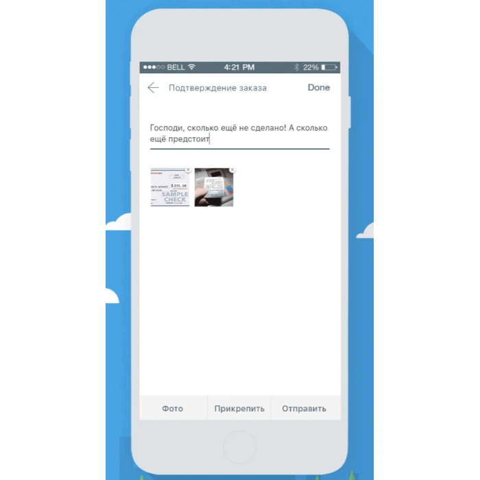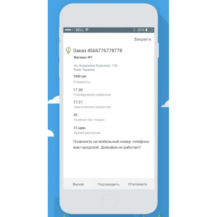 - sending photos with explanations to the dispatcher to report updated information on the order;