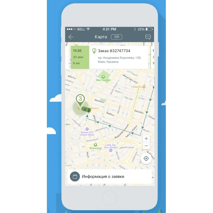- the route is laid using a third-party application; thus, it is always in sight and does not interfere with the work with orders;