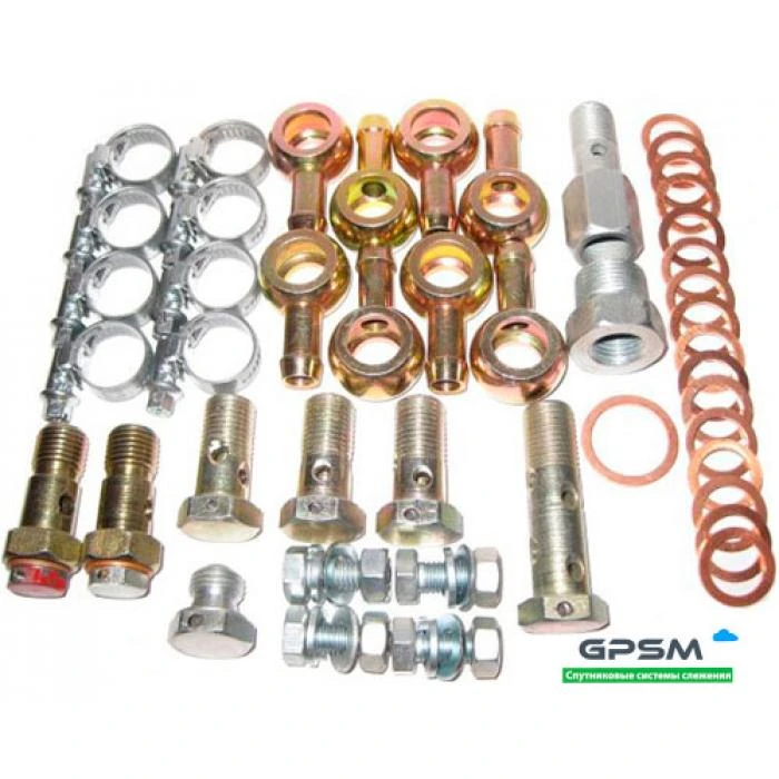 Монтажные комплекты DFM 8, VZP 8 и VZD 8 от компании изготовителя Aquametro используются для монтажа приспособлений, обеспечивающих контроль расхода дизтоплива в трубопроводах диаметром ¼". В состав набора входят проволока и пломбы, зажимы для фиксации шлангов, гайки, переходники, обратные клапана, присоединительные штуцеры, шайбы для обеспечения требуемой плотности соединения и отсутствия протекания.