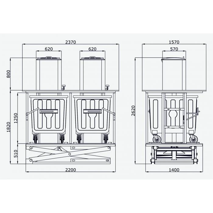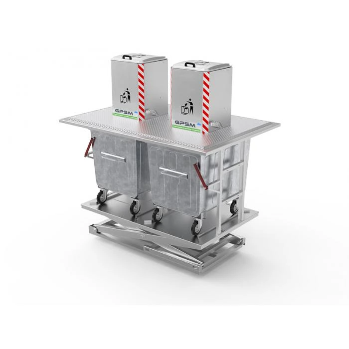 Подключив шланг гидравлического насоса мусоровоза к платформе контейнера, гидравлический подъёмник поднимает платформу и контейнеры могут быть легко забраны.