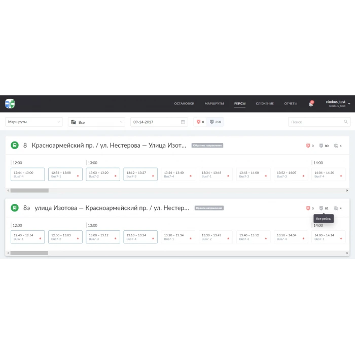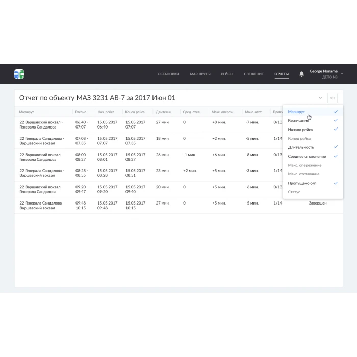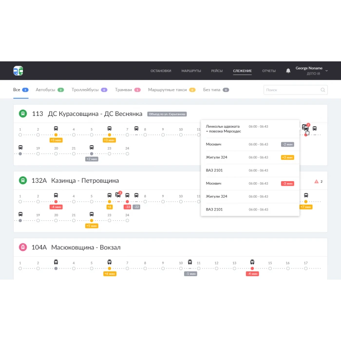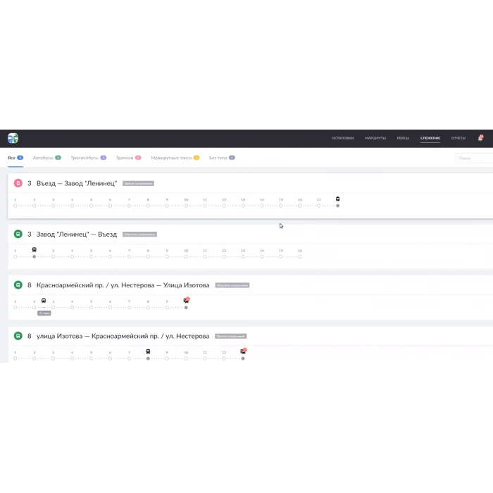 4. Наблюдайте за передвижением ТС и соответствием расписанию.