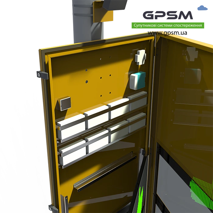 Устройство отличается не только простотой монтажа на столб, но и удобством замены нужных модулей. Закрепить оборудование на столбе можно посредством ленты из стали всего за 15 минут. Менять составляющие системы можно посредством открытия передней панели. При этом само оборудование не потребуется демонтировать с места крепления. Открыв панель, как дверку тумбы, можно заменить вентиляционное устройство, SIM-карту или другие комплектующие.