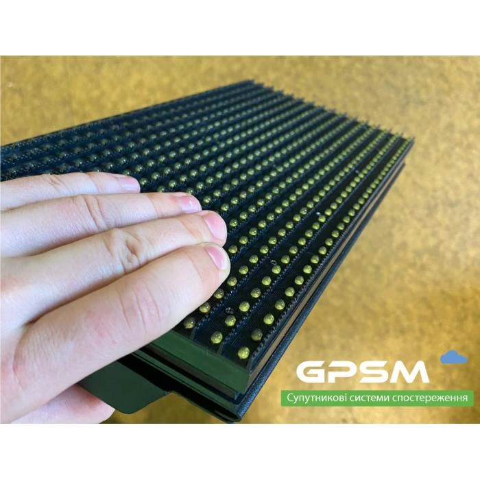 Монохромное табло небольшого размера – 320 на 160 мм – за счет работы 512 светодиодных элементов позволяет формировать текстовые сообщения в виде номера маршрута. Табло устанавливается в хвостовой части транспортного средства. Цвет светодиодов: желтый, красный, синий или зелёный.