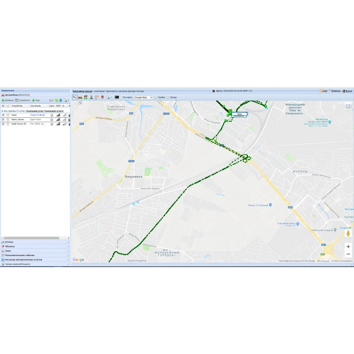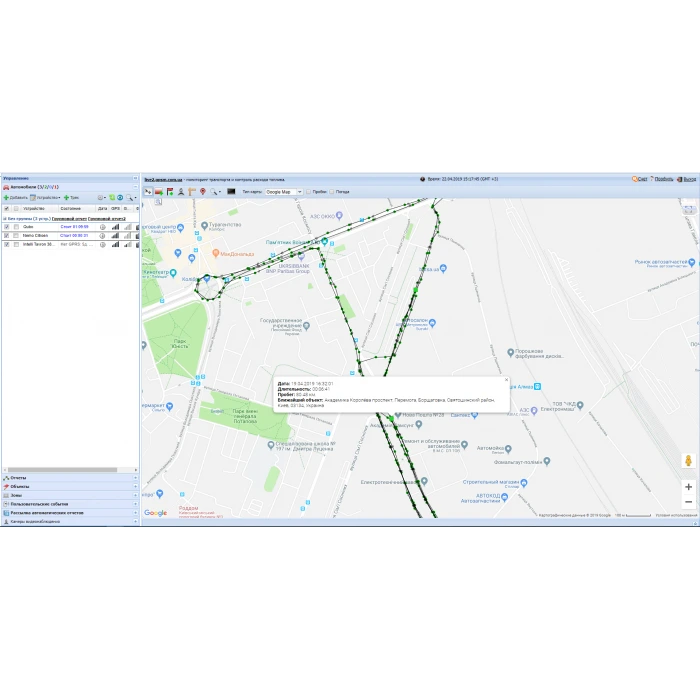 - monitoring the movement of a car or courier along a route with specified control points through the “Routes” module;